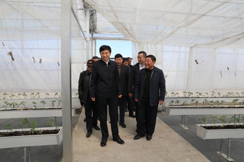 考察期间,张越杰一行参观了民乐村育苗基地和设施蔬菜大棚。